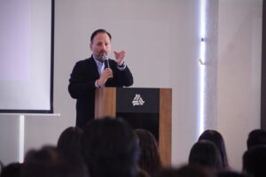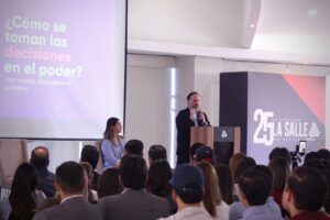 Ante las y los estudiantes, planteó cinco elementos clave para la toma de decisiones éticas: información, legalidad, impacto social, integridad y responsabilidad, además de reconocer los dilemas del poder, donde frecuentemente se elige entre lo correcto y lo conveniente.
