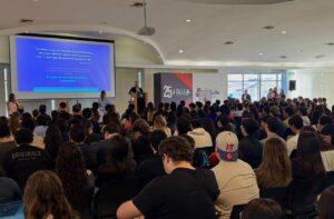En el marco del “Mes de la Ética 2026 organizado por Phi Delta Phi” en la Universidad La Salle Chihuahua, el Secretario General de Gobierno, Santiago De la Peña, tuvo la oportunidad de sostener encuentro con más de 200 estudiantes de diferentes carreras, principalmente de la licenciatura de Derecho donde habló de la importancia de ejercer el poder con ética y responsabilidad, con la conferencia denominada ¿Cómo se toman las decisiones en el poder”.