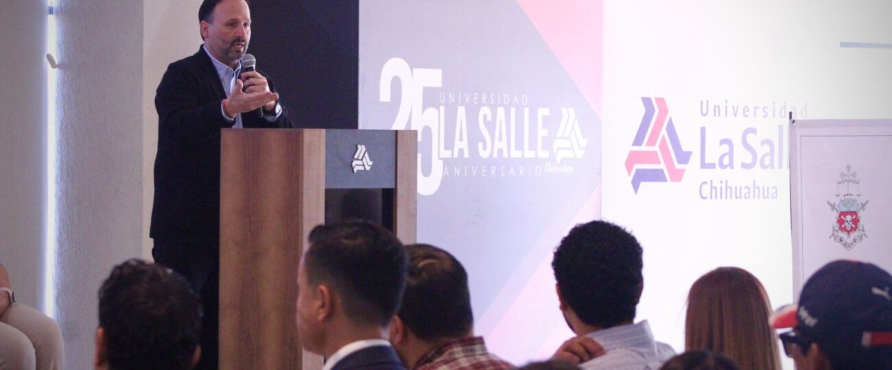 En el marco del “Mes de la Ética 2026 organizado por Phi Delta Phi” en la Universidad La Salle Chihuahua, el Secretario General de Gobierno, Santiago De la Peña, tuvo la oportunidad de sostener encuentro con más de 200 estudiantes de diferentes carreras, principalmente de la licenciatura de Derecho donde habló de la importancia de ejercer el poder con ética y responsabilidad, con la conferencia denominada ¿Cómo se toman las decisiones en el poder”.