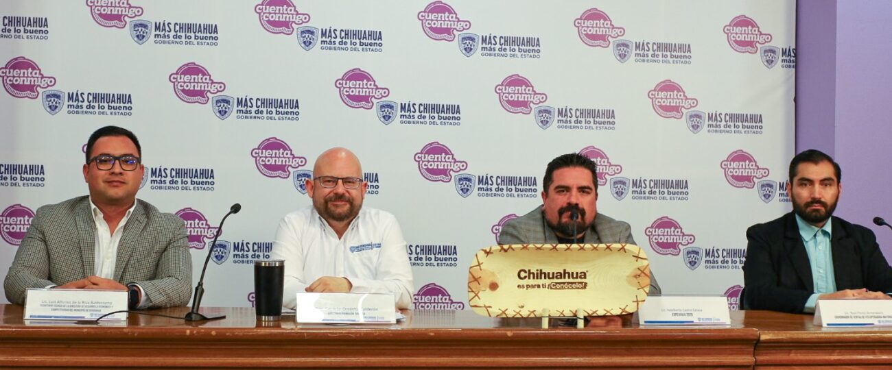 La presentación fue encabezada por Germán Orrantia, director de Promoción Turística; Luis de la Riva, secretario técnico de la Dirección de Desarrollo Económico y Competitividad del Municipio de Chihuahua; Adalberto Castro, representante de ExpoViaja 2026 y Raúl Flores, coordinador de ventas de VTO Operadora Mayorista.