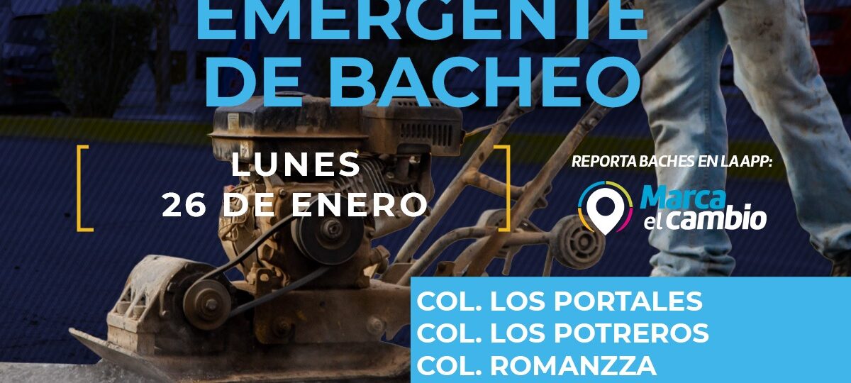 El Gobierno Municipal, a través de la Dirección de Obras Públicas, realizará trabajos de bacheo este lunes 26 de enero mediante el programa emergente en calles de las colonias: Los Portales, Los Potreros, Romanzza, San Felipe y Residencial Leones.