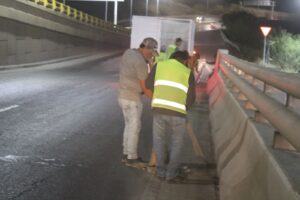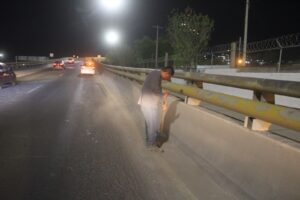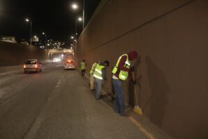 Personal de dependencia en mención, realiza acciones de limpieza, corte de hierba, papeleo y pepena en la parte alta de los puentes vehiculares, trabajos que se efectúan durante el turno nocturno para evitar entorpecer el tránsito de la zona.