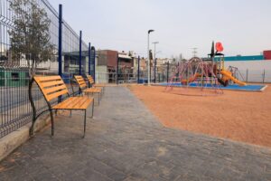 Entre los trabajos realizados destacan la sustitución de pasto sintético, pintura y red de nylon en la cancha de futbol rápido; construcción de rampas y banquetas; suministro e instalación de aparatos de ejercicio, bancas y módulos de juegos infantiles; colocación de reja perimetral tipo “reja cero”; instalación de pasto sintético en áreas infantiles; reforestación y otras mejoras que contribuyen a un entorno más ordenado y seguro.