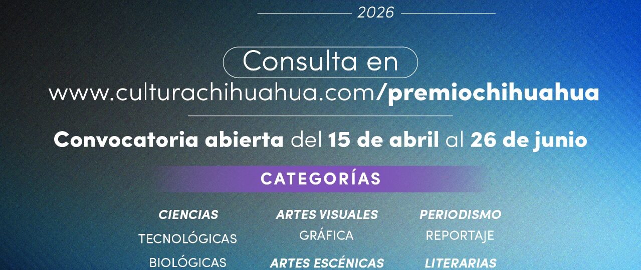La Secretaría de Cultura convoca a la comunidad científica y artística de la entidad a participar en la edición 2026 del Premio Chihuahua “Vanguardia en Artes y Ciencias”.