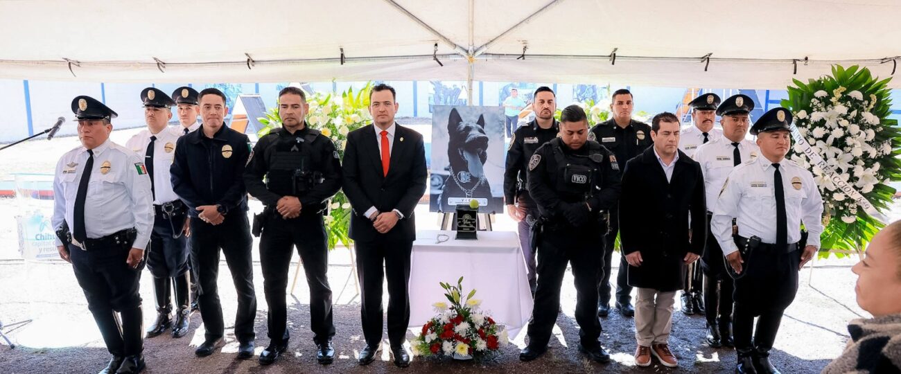 El alcalde Marco Bonilla, encabezó una guardia de honor para despedir y reconocer el heroísmo de Vico, perro policía que falleció en cumplimiento del deber tras durante un operativo de atención de violencia familiar en un domicilio ubicado “La Cuadrilla” en el Ejido el Fresno.