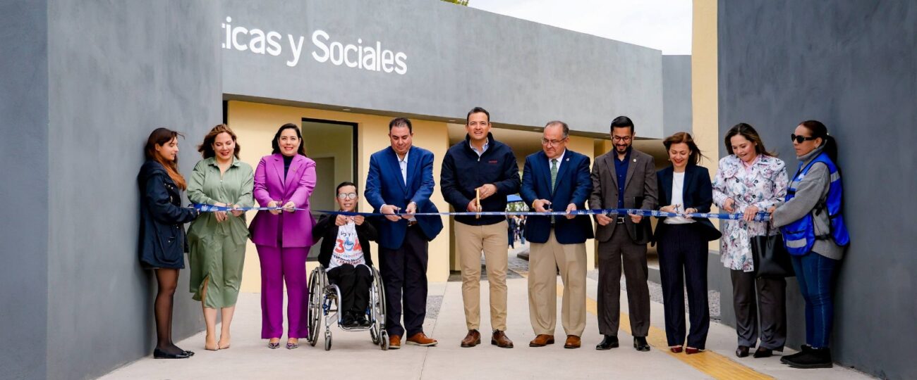 El alcalde Marco Bonilla encabezó el corte de listón del Espacio Seguro y Adaptado en la Facultad de Ciencias Políticas y Sociales de la Universidad Autónoma de Chihuahua (UACH), una obra que mejora la accesibilidad, seguridad y movilidad para la comunidad estudiantil, especialmente para alumnas y estudiantes con discapacidad.