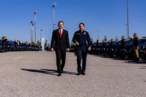 En representación de la gobernadora Maru Campos, Esteban Piñón Olivas, subsecretario de Especialización y Profesionalización Policial, señaló que la seguridad en Chihuahua, se construye con hechos, resultados y fortaleciendo las corporaciones, por lo que esta entrega a la par de dignificación policial, significa una mejor respuesta a cada situación que se pudiera presentar.