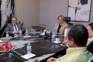 En el marco del encuentro, que la gobernadora Maru Campos sostuvo con miembros del patronato de la Universidad La Salle (ULSA) Chihuahua la mandataria recibió reconocimientos dirigidos a Víctor Cruz y a Guillermo Campos, por su legado que dejaron a la institución.
