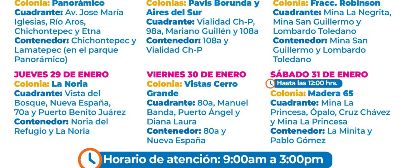 Aunado a ello, se realizan recorridos con perifoneo en los vehículos por los cuadrantes de las colonias que se visiten en la semana para retirar los tiliches, por lo que se pide que dejen estos desechos al pie de banqueta.