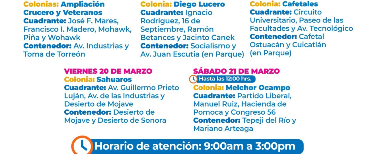 Aunado a ello, se realizan recorridos con perifoneo en los vehículos por los cuadrantes de las colonias que se visiten en la semana para retirar los tiliches, por lo que se pide que dejen estos desechos al pie de banqueta.