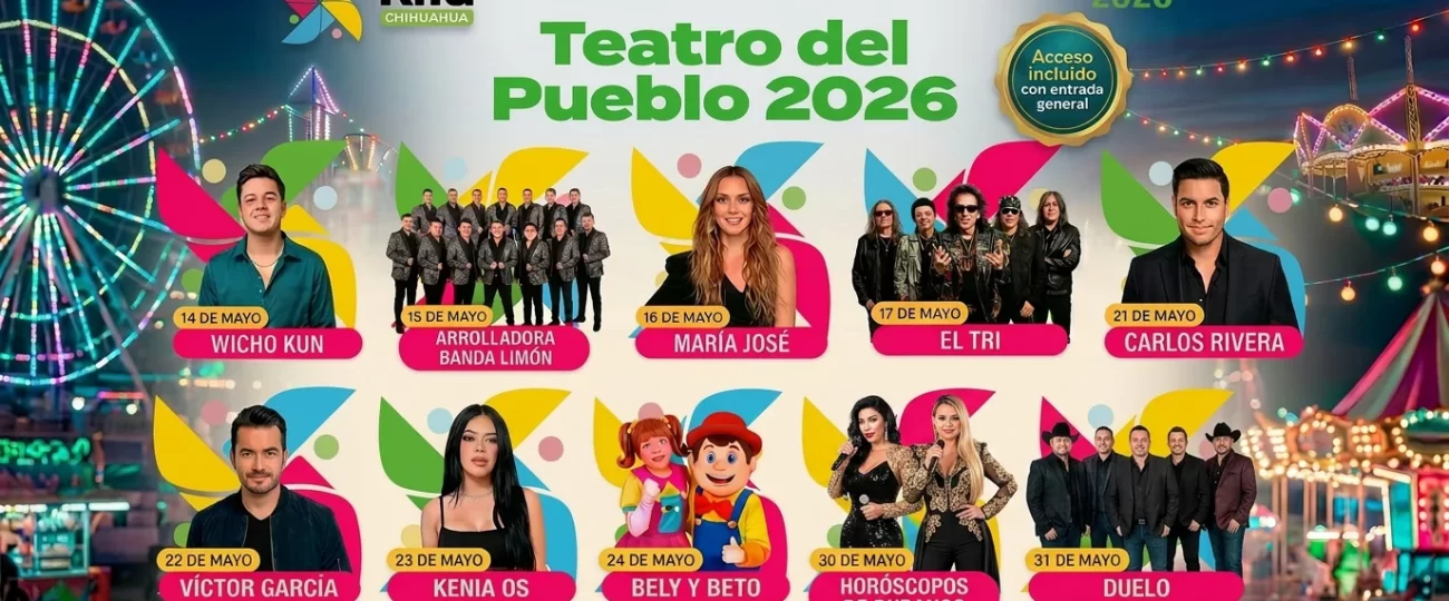 La tradicional Feria de Santa Rita 2026 ya tiene lista la cartelera oficial de su Teatro del Pueblo, uno de los espacios más esperados por las y los chihuahuenses, que año con año se dan cita para disfrutar de espectáculos musicales incluidos con el acceso general al recinto ferial.
