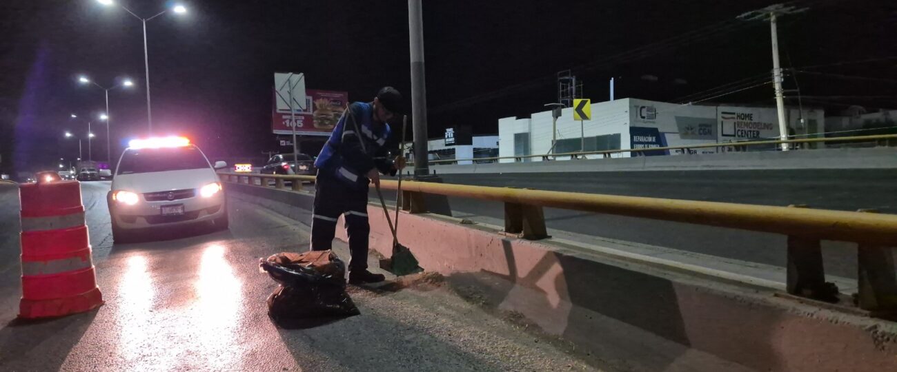 Como parte de estas labores, diariamente se despliegan cuadrillas nocturnas que realizan trabajos de limpieza en vialidades de alto flujo vehicular, mismas que no pueden ser atendidas durante el día debido a su importante tráfico. Estas acciones permiten intervenir de manera eficiente sin afectar la libre circulación de los vehículos, priorizando tanto la seguridad como la movilidad de la ciudadanía.