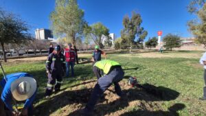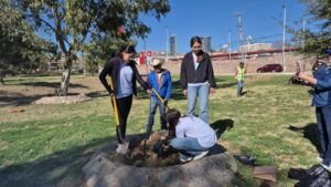 Con el objetivo de impulsar la cultura del cuidado ambiental y contribuir a la mejora del entorno urbano, el Gobierno Municipal, a través de la Dirección de Mantenimiento Urbano, en colaboración con el Club Rotario de Chihuahua, realizó la plantación de 40 árboles en el camellón central de la avenida Francisco Villa entre la Izalco y Periférico de la Juventud.