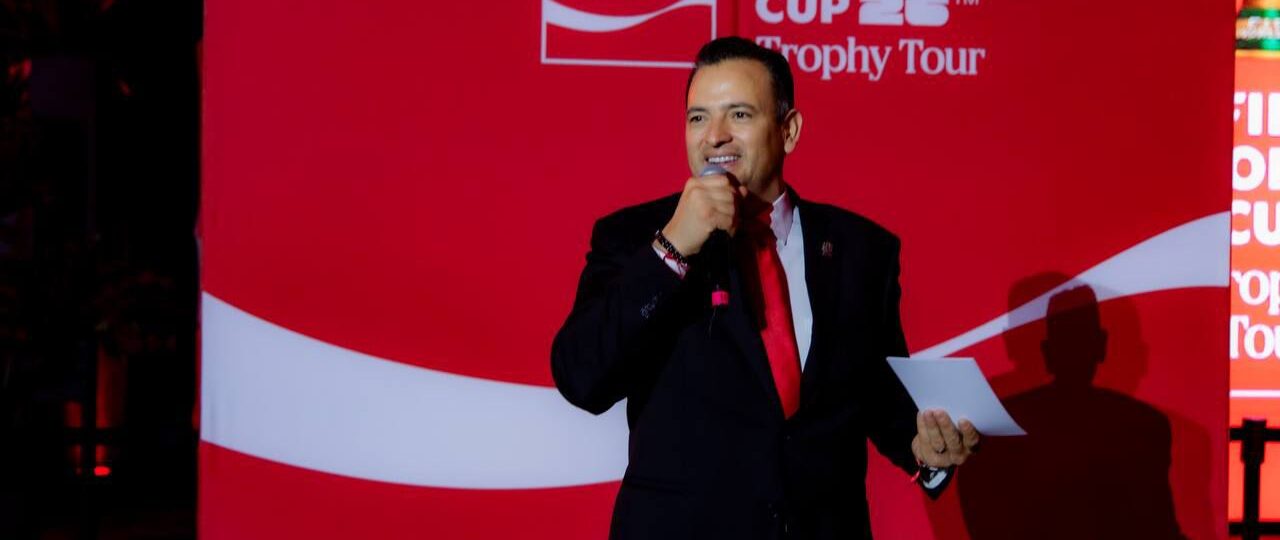El alcalde capitalino, Marco Bonilla, agradeció a Jose Borda, de Arca Continental; Mariana Torregitar de Cocacola Company; Edibray Gomez secretario de Turismo del Estado en representación de la gobernadora Maru Campos y Vichenzo Laquinta, jugador FIFA; por haber hecho realidad el sueño de tener la Copa de Mundo en Chihuahua Capital.