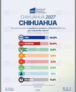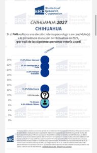 Chihuahua, Chih.— La más reciente encuesta correspondiente al mes de abril confirma que la contienda interna del Partido Acción Nacional (PAN) rumbo a la alcaldía de Chihuahua capital se encuentra en plena efervescencia, con un escenario cada vez más competitivo y dinámico.