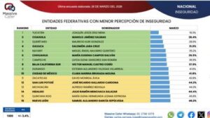 Aunque el estado aún enfrenta desafíos estructurales en materia de seguridad, el indicador lo coloca por encima de la media nacional y dentro de un grupo donde destacan entidades como Yucatán, Coahuila, Querétaro, Oaxaca y Nayarit.