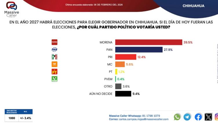 Gubernatura de Chihuahua | Preferencias por partido (6 de febrero 2026)