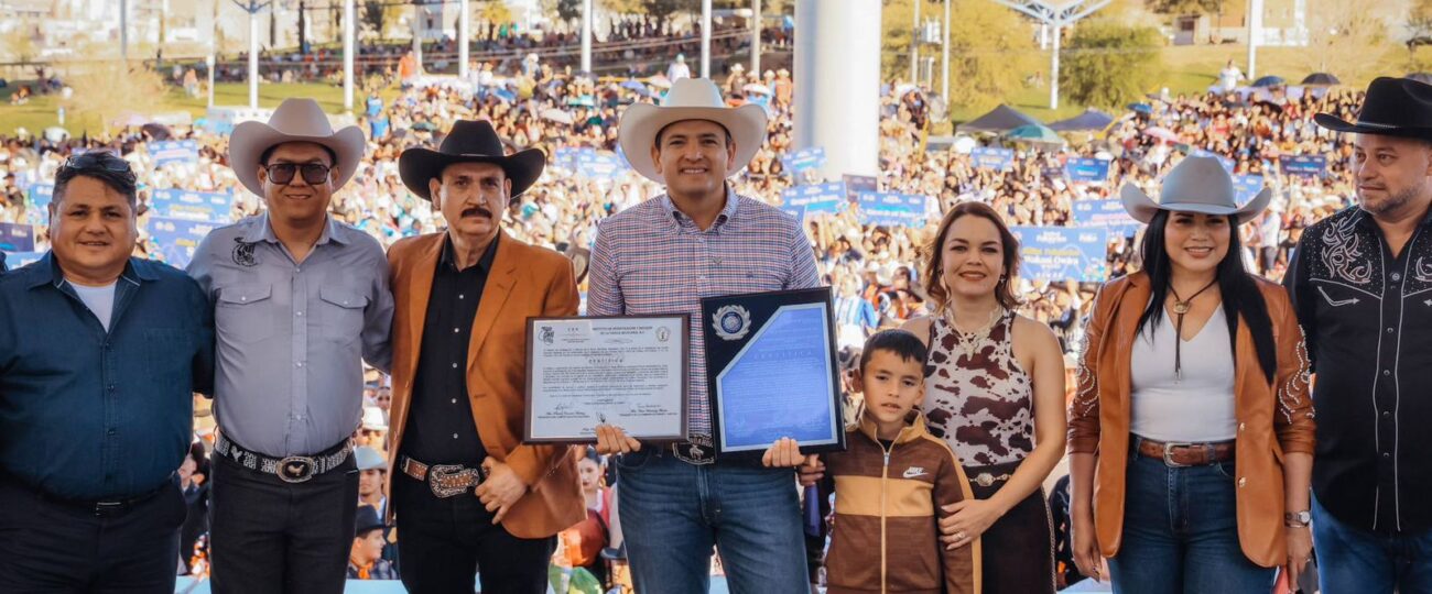 El alcalde Marco Bonilla recibió un premio mundial a nombre de Chihuahua Capital por el evento Polka Monumental edición 2026, que organiza el Gobierno Municipal, donde se rompió récord histórico al aglomerar a 3 mil 754 bailarines provenientes del estado de Chihuahua y de fuera, quienes interpretaron al mismo tiempo la canción de Aguas del Río Nonoava.