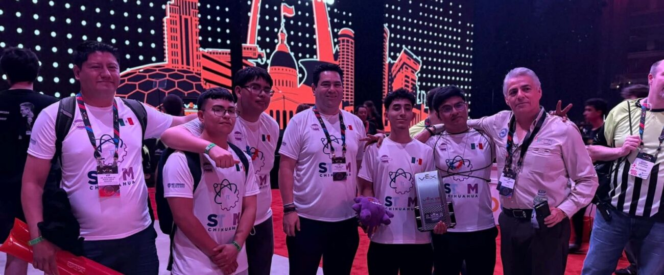 El Colegio de Estudios Científicos y Tecnológicos del Estado de Chihuahua (CECyTECH) reconoció a alumnos de los planteles CECyT 11 y CECyT 14 de Ciudad Juárez, quienes obtuvieron premios a nivel mundial en el VEX Robotics World Championship 2026 en St. Louis, Missouri.
