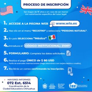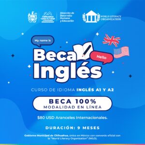 El Gobierno Municipal de Chihuahua, invita a la ciudadanía a registrarse en la Beca de Inglés, disponible gracias a la colaboración con la World Literacy Organization (WLO) y el respaldo académico de la Universidad CEU Cardenal Herrera.