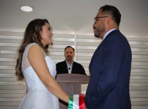 Asimismo, aprovechó la oportunidad para llevar a cabo el protocolo legal de dos matrimonios de parejas que acudieron a la oficina para formalizar su unión, en un acto que destacó por su cercanía con la ciudadanía.