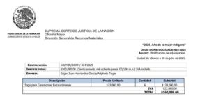 Los ministros de la Corte compraron, en julio de 2025, 12 togas con un costo unitario de entre 22 mil y 24 mil pesos, seis son para sesiones extraordinarias y seis para sesiones ordinarias.