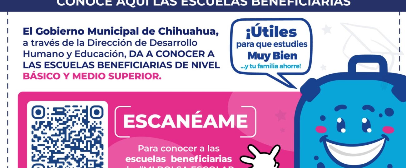 El Gobierno Municipal de Chihuahua, a través de la Dirección de Desarrollo Humano y Educación, informa que ya se encuentran disponibles la lista de escuelas beneficiadas del programa Mi Bolsa Escolar 2026.